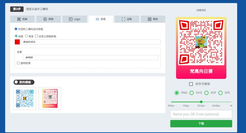 内容编辑完成后,点击生成二维码。在美化界面,你可以上传美术馆的Logo放在二维码中央,并调整二维码的颜色,使其与展览的主视觉色调保持一致,甚至可以设计成圆点或液体状,让二维码本身也成为展签设计的一部分。之前在国内和国外,有一些艺术展览,甚至直接将设计好的特色二维码作为展品展览出来。