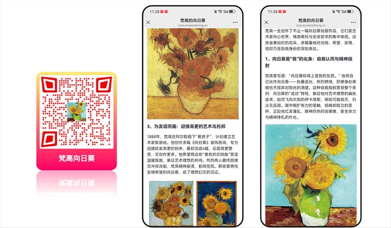 比如,传统的展品说明牌往往受限于版面空间,只能提供基础信息,例如作者、创作年代、材料等。而通过图文讲解二维码,可以延伸展示: