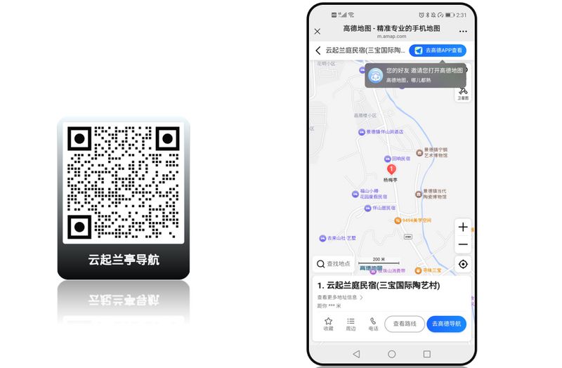 导航二维码,顾名思义,是一种将某个特定地理位置信息(如地址详情、经纬度坐标或导航链接)编码而成的二维码。当我们使用手机的扫描该码后,手机会自动识别并跳转至手机中已安装的地图应用(如高德地图、百度地图、腾讯地图等),直接出现从用户当前位置到预设目的地(比如一个热门旅游城市的某个民宿)的导航路线,按照这个导航路线,就可以找到正确的目的地了。