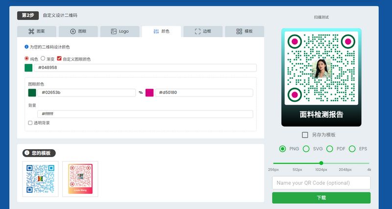 4. 检测报告二维码美化:在这里可按需调整二维码颜色、添加品牌logo,让二维码更贴合品牌形象,也能保持默认简约样式,不影响扫码识别。