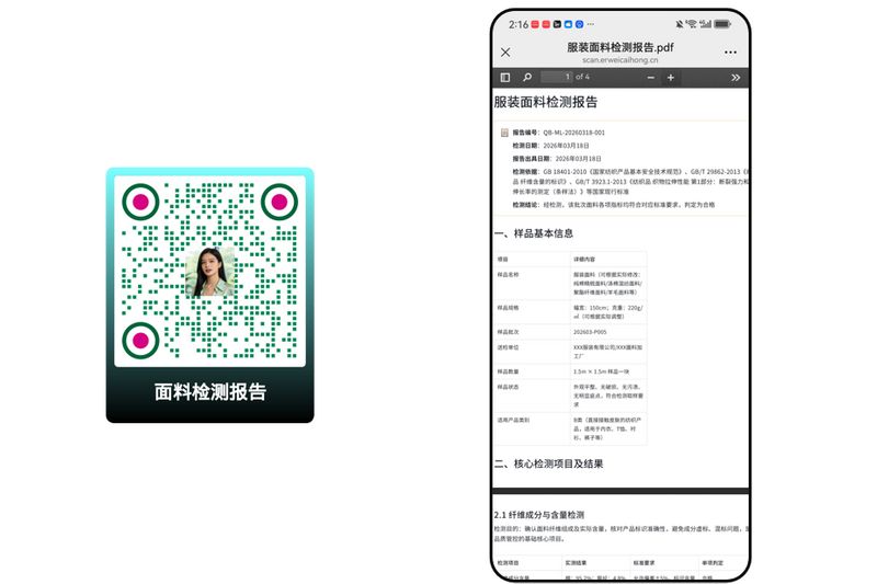 做服装生意,不管是线上电商开店、直播带货,还是线下实体店供货、外贸出口,面料检测报告都是绕不开的核心凭证。但纸质报告易丢失、电子版发送麻烦,把检测报告做成二维码,扫码就能查看完整文件,成了当下服装商家高效合规的首选方式。很多商家都在问:如何将服装面料检测报告文件生成二维码?这份超详细教程,从基础概念、实用价值到实操步骤、常见疑问,一次性讲透,新手也能轻松上手。