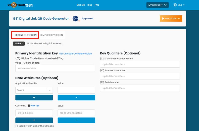 • 第一步:登录QR Tiger 的GS1数字链接二维码生成器官网