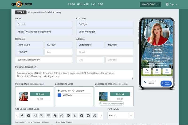 QR Tiger 企业版电子名片二维码生成器,是国际知名二维码平台QR Tiger专为全球企业级用户,包括外贸公司、出海品牌和国际化团队打造的在线软件。QR Tiger 的电子名片二维码超越了简单的如个人联系方式等常见的商务名片信息存储,还允许用户创建一个包含丰富多媒体信息的数字化名片页面,如社交媒体链接(Youtube/ Instagram / Linkedin / Facebook / X …)、网站(企业官网, 跨境电商店铺如Ebay、Amazon、Shopify…)、谷歌地图定位等,并通过一个自定义设计的二维码进行分享。