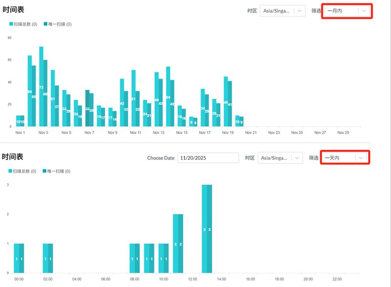 • 唯一用户数:区分总扫描次数和独立访客数量,更真实地反映触达人数。