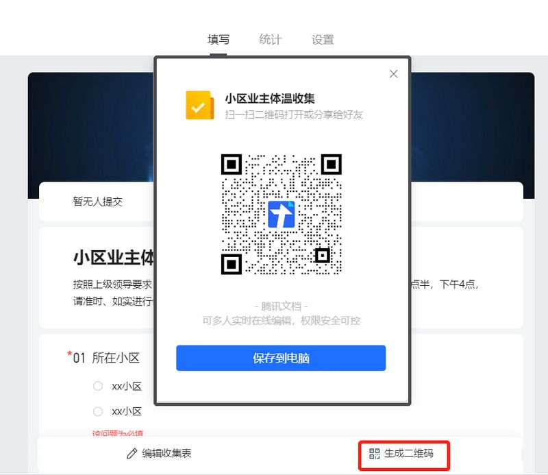 如果扫描之后,正确跳转到【腾讯文档】在线体温信息收集表的内容提交页面,检查所有信息都正确后,便可以下载使用这个二维码了。